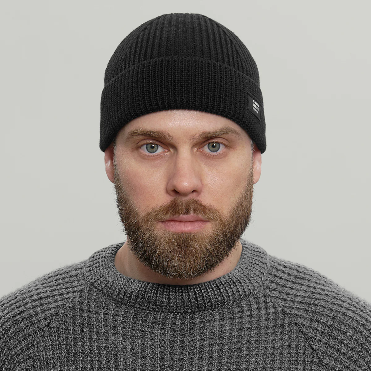 Merino Short Beanie Hat Morse Code Logo RD-MRNSBHMCL BLACK